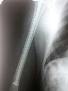 Перелом діалізу плечової кістки синтезований блокованим стержнем