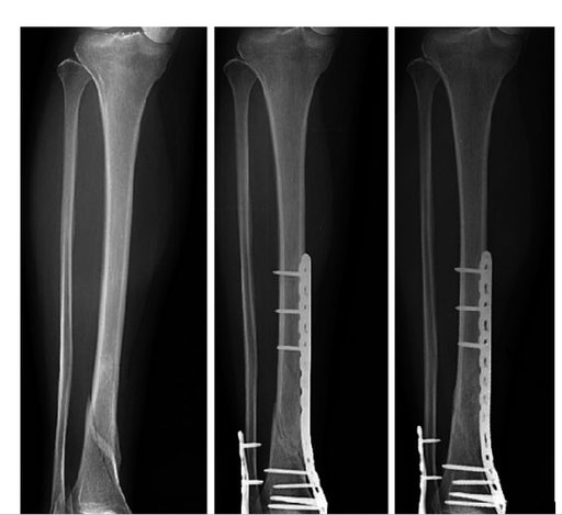 При лікуванні переломів гомілки індивідуально для кожного хворого підбирається найкращий метод фіксації з використанням , як блокуючих інтрамедулярних систем, так і накістковим остеосинтезом з використанням малоінвазивної техніки операції.