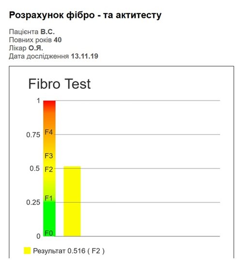 Таким чином хворий позбувся від збудника, після чого поволі став регресувати й фіброз печінки – від F4 (крайній ступінь, що відповідає стадії сформованого цирозу) до F2 вже через 6 міс. після закінчення терапії.